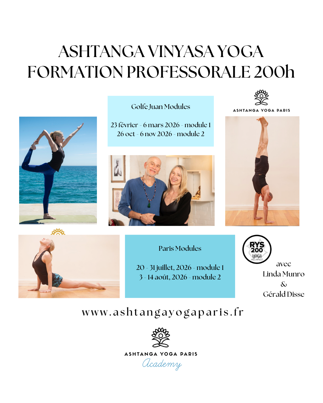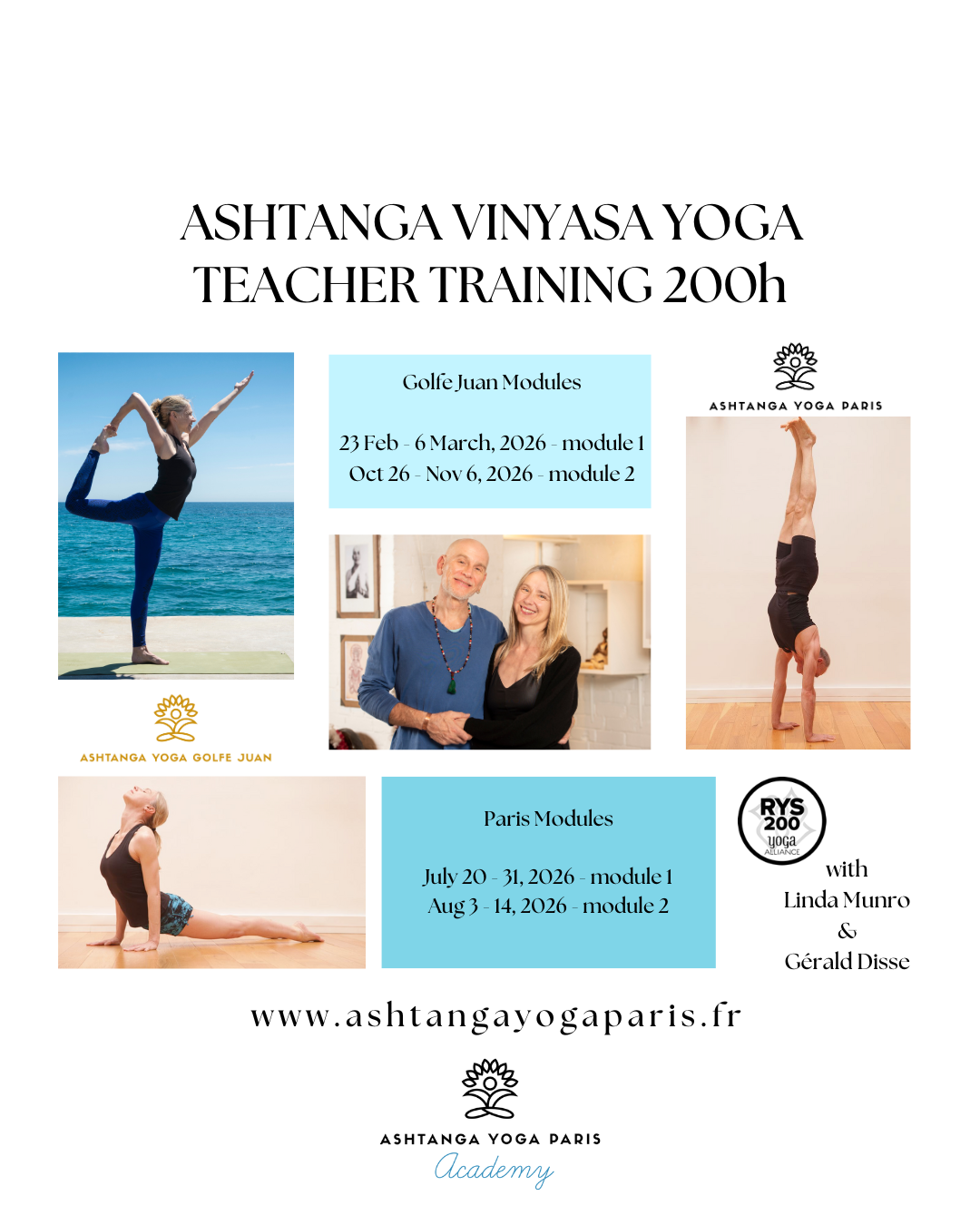 You will learn directly from senior Ashtanga Yoga teachers Linda Munro and Gérald Disse who have developed a proven teacher training program that has trained dozens of skilled teachers over the years!